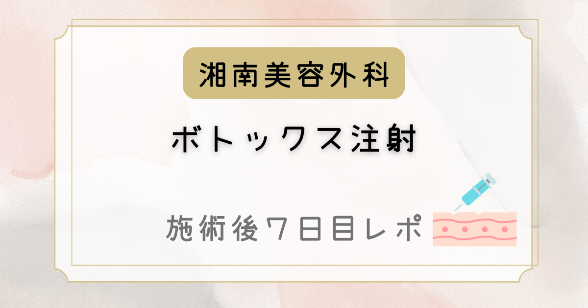 こんにちは!今回は湘南美容外科で受けた目の下・目尻のボトックス注射から7日目の経過についてレポートします。