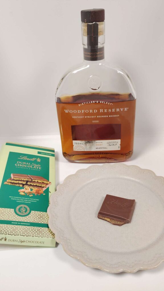 ウイスキー好きにおすすめ|Lindtのドバイスタイルチョコ×Woodford Reserve
