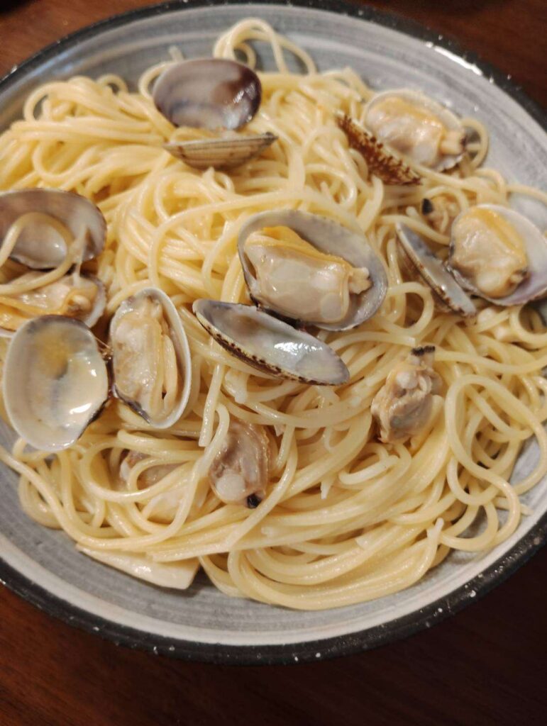 わが家は全員、パスタが大好き。この日の夕食はパパが作ってくれたボンゴレビアンコ。シンプルながら絶品で、家族みんな大満足でした。