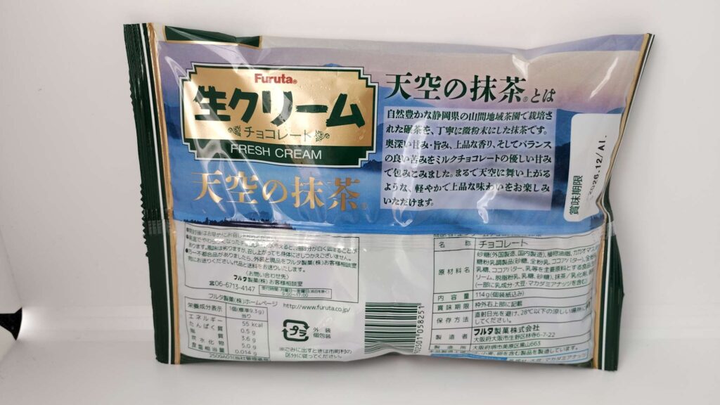 コンビニやスーパーで見かけて気になっていた、Furuta 生クリームチョコレート「天空の抹茶」。抹茶味のお菓子はたくさんありますが、「天空の抹茶」という名前に特別感があり、抹茶好きとしては見逃せませんでした。
