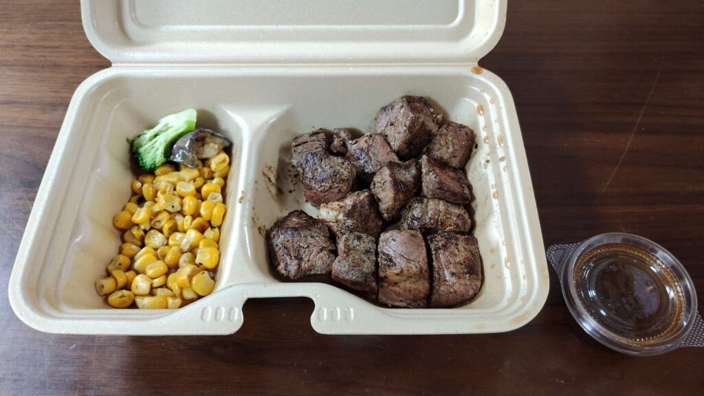 実際に失敗したと感じたのが、ワイルドステーキ&ジム飯「ブロビー」で注文した赤身カットステーキ150gです。