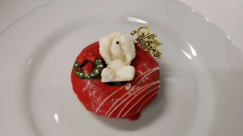 鮮やかな赤がクリスマス感を一気に高めてくれるドーナツ。3つの中でいちばん華やかさがあります。