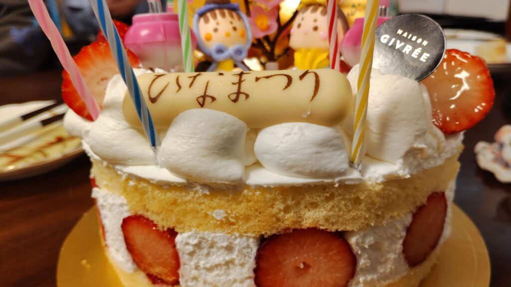 わが家は私もこどもたちもケーキが大好きなので、大き目サイズを購入しました。ひな祭りのお祝いパーティーにぴったり。