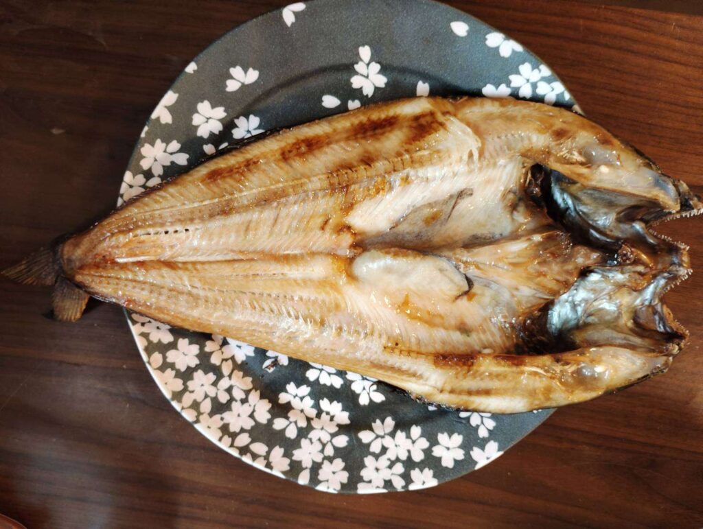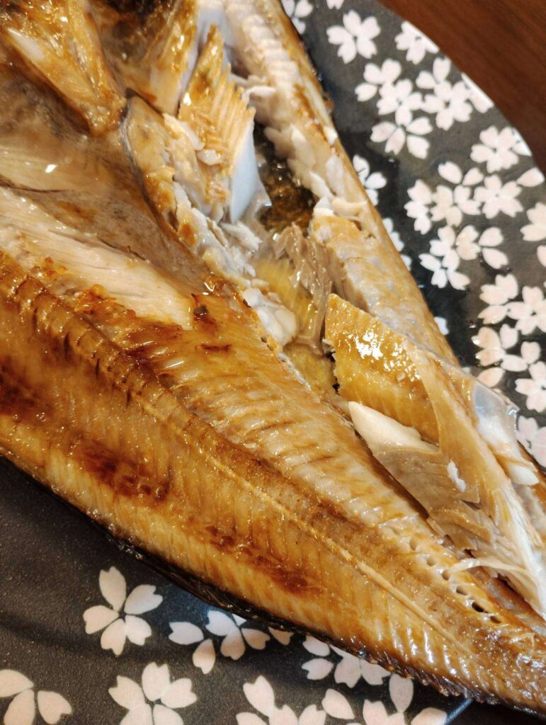 こんがりと焼き色がつき、皮はパリパリ、身はふっくらとした、理想的な焼き加減のほっけの干物が!