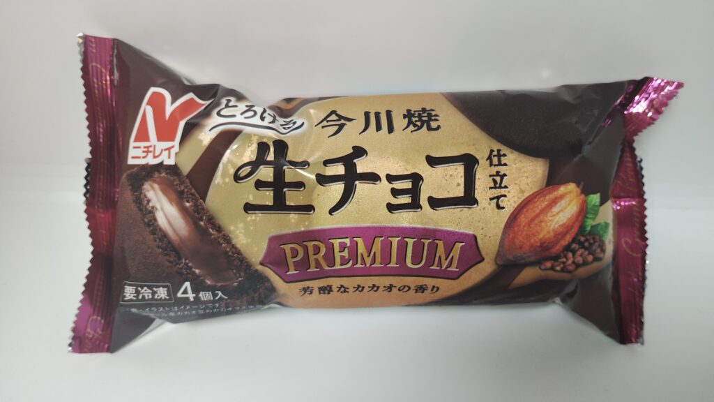 前回の記事では、ニチレイの「今川焼(宇治抹茶あんプレミアム)」をレビューしましたが、今回は、チョコ好きの私がよく食べている 「今川焼(とろける生チョコ仕立て プレミアム)」 をご紹介します。