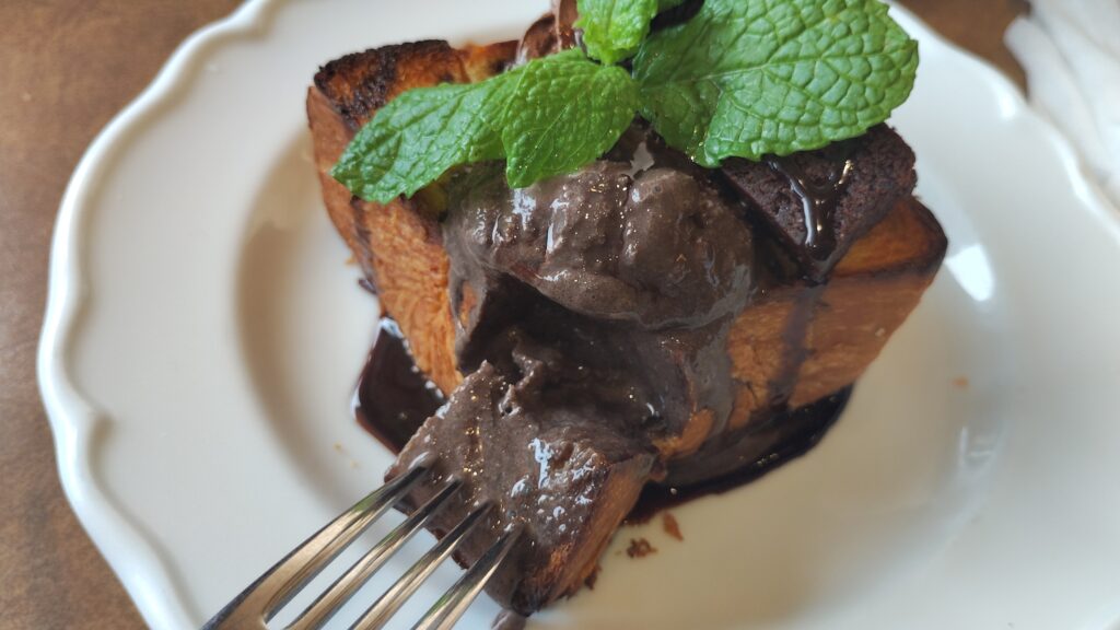 添えられたチョコジェラートとの組み合わせは絶品で、温かいトーストと冷たいアイスのコントラストが口の中で広がり、贅沢感を味わえます。