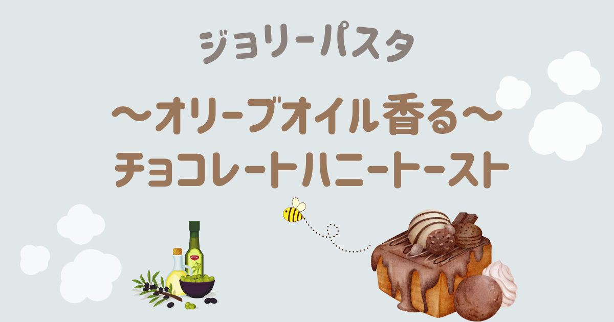 ジョリーパスタの人気デザート「オリーブ香るハニートースト」に新作が登場!厚切りトーストにチョコレートソースとハチミツ、さらにオリーブオイルをひとまわし。甘さの中に香りが広がる大人向けスイーツで、SNSでも話題です。
