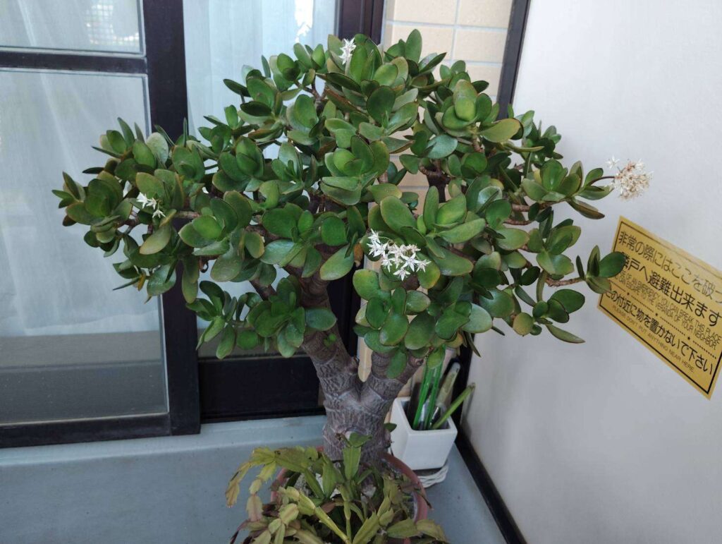 金のなる木は、花が咲くと枯れるという言い伝えがありますが、花を摘み取ることで、株を維持することができます。