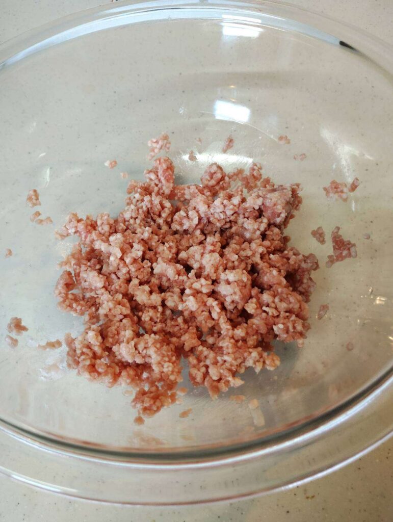 1.挽肉をぱらぱらにほぐして片栗粉をまぜる