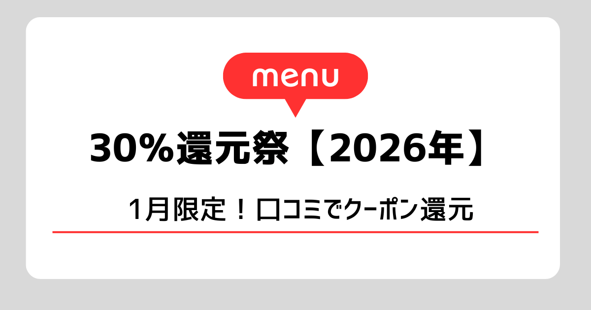 2026年1月、menu(メニュー)で期間限定の「30%還元祭」がスタートしています。条件を満たすだけで、商品代金の30%分がクーポンで戻ってくる、かなりお得なキャンペーンです。
