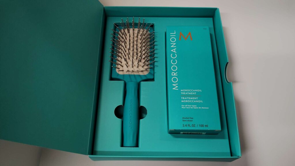 今回のリピート購入では、モロッカンオイル本体にミニパドルブラシが付いた限定セットを選びました。