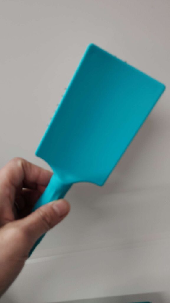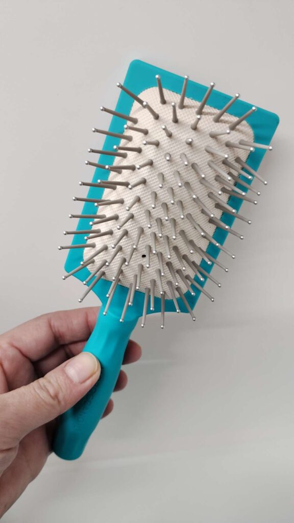 付属のブラシはしっかりした作り。毛先まで引っかかりにくく、オイル後の髪を整えるのにも使いやすいです。