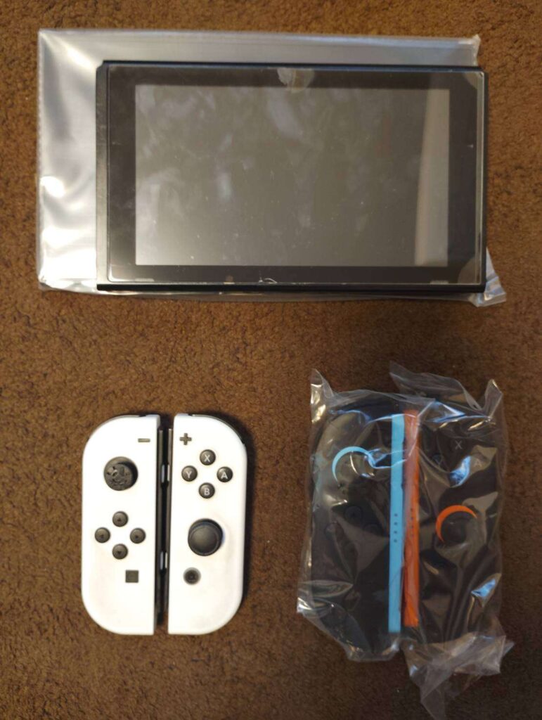 中身は本体、Joy-Con、ドック、充電ケーブル、HDMIケーブル、マニュアルといった基本的な構成に加え、新型専用のアダプターが付属していました。初代スイッチとの違いは、Joy-Conの形状やドックのデザインに明確に現れており、細かな仕様変更も含めて新モデルの進化を感じさせます。
