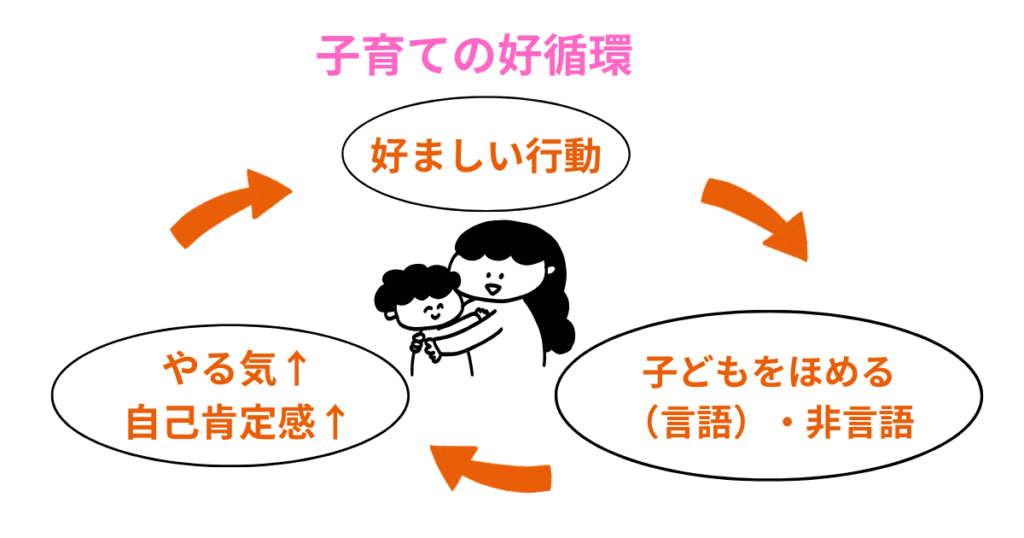 ペアレントトレーニングは、叱って育てる子育ての悪循環をほめて育てる子育ての好循環に変化させるという考え方です。