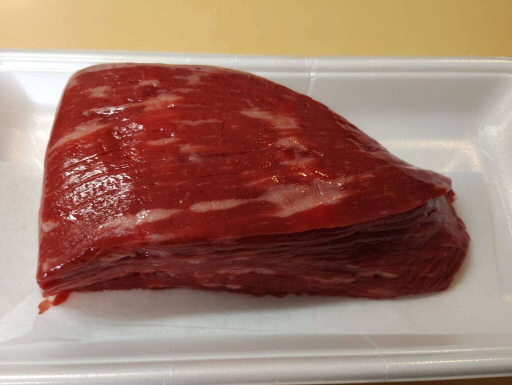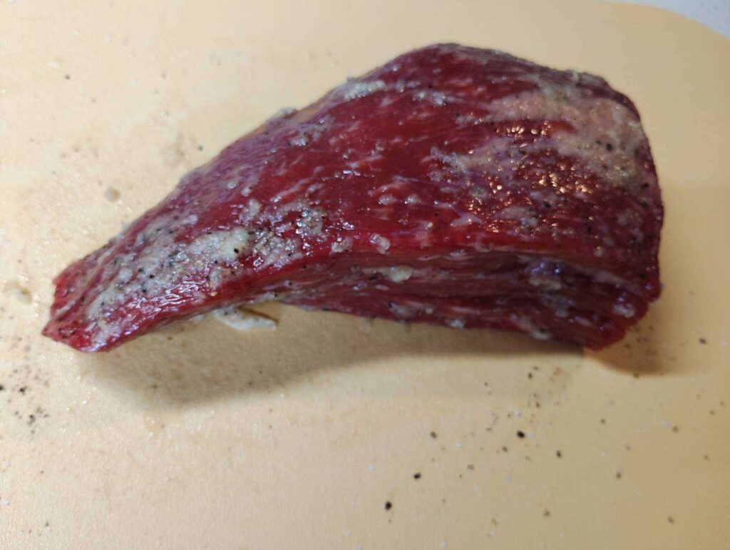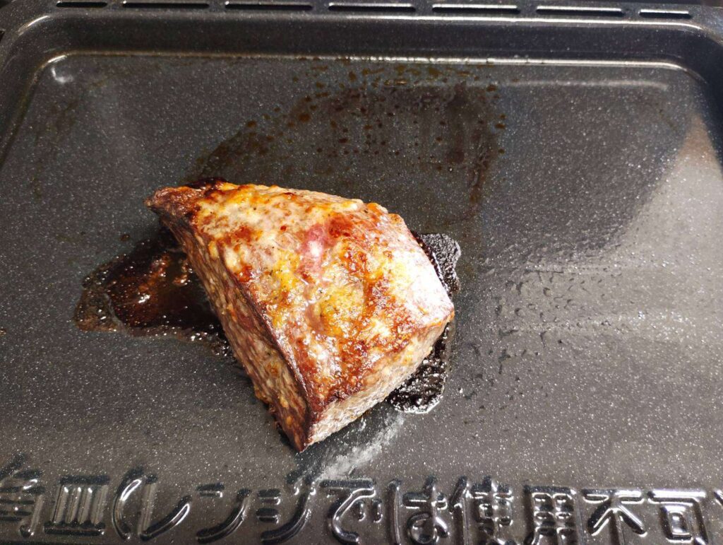 端っこはほぼ完全に火が通っているところもありました。中央部分も、レアというよりはぎりぎりミディアムレアという感じです。表面はしっかりと焼けていて固めですが、中央は柔らかな仕上がりです。