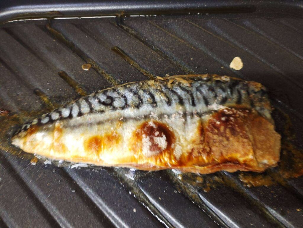 - 冷凍のさばフィーレは流水で解凍し、水気をキッチンペーパーで拭き取る。さばをグリル皿に載せて、BISTROの「塩さばモード」で加熱。