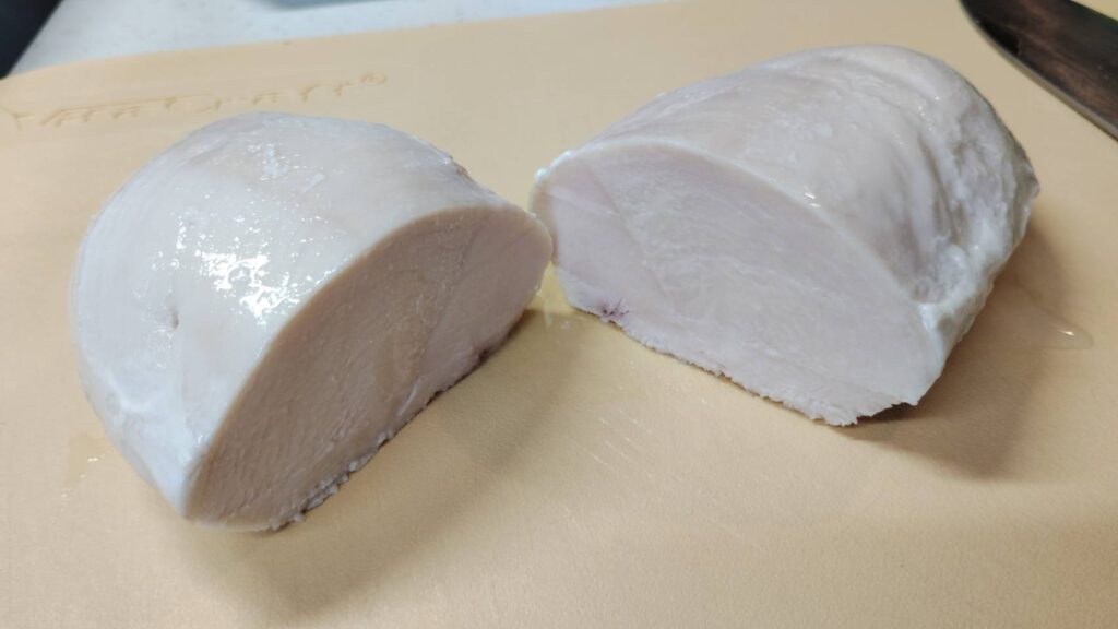 「え、これだけで本当に上手にサラダチキンができるのかな?」と半信半疑で動画を見ながら作ってみたら…しっとりジューシーで、今まで作ったサラダチキンの中で史上最強の美味しさに仕上がりました。
