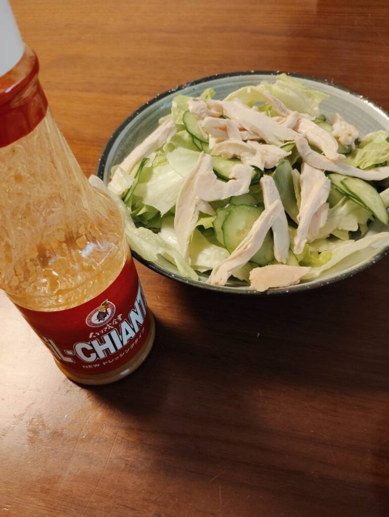 サラダチキンで作るサラダはヘルシーかつボリュームも出ます。こどもたちも喜んで食べてくれるので、いつのまにか食べきっています。