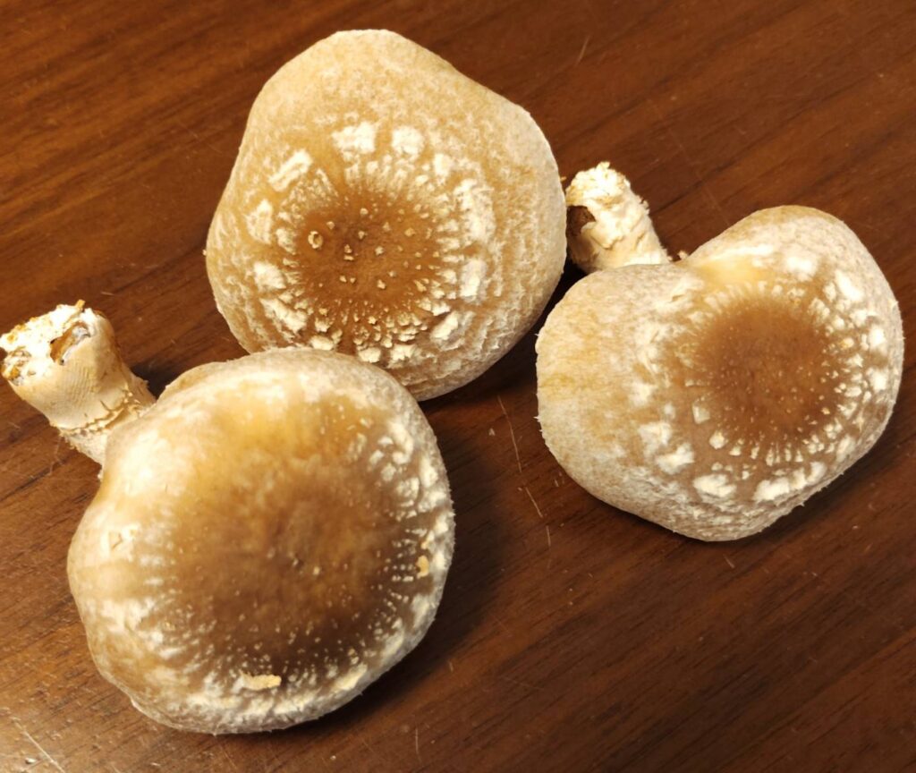 栽培キットの説明書によると、ヒダの膜が切れているしいたけは、小さくても収穫すべきとのこと。成長のタイミングを逃すと乾燥や変色の原因になるため、見た目よりも“ヒダの状態”をチェックするのがポイントです。