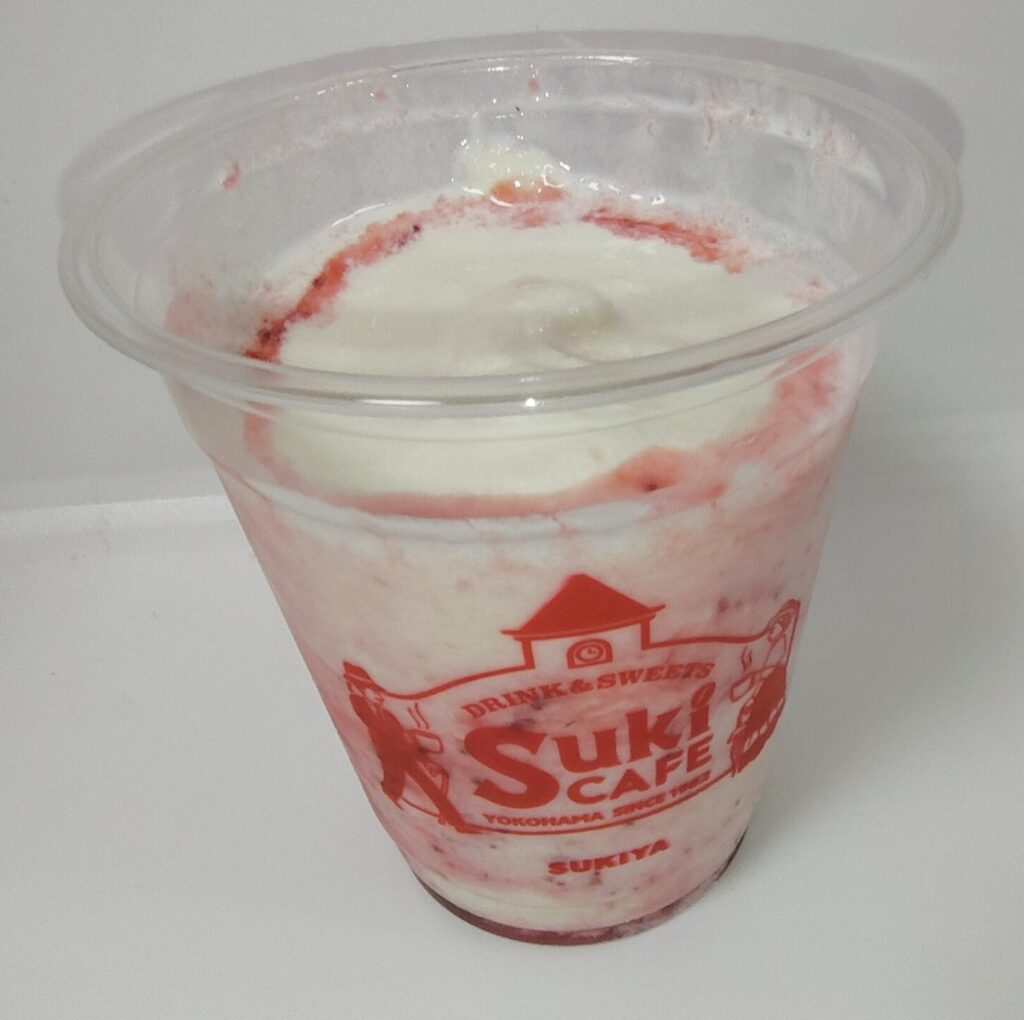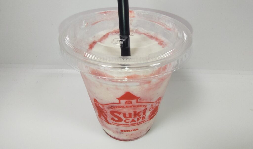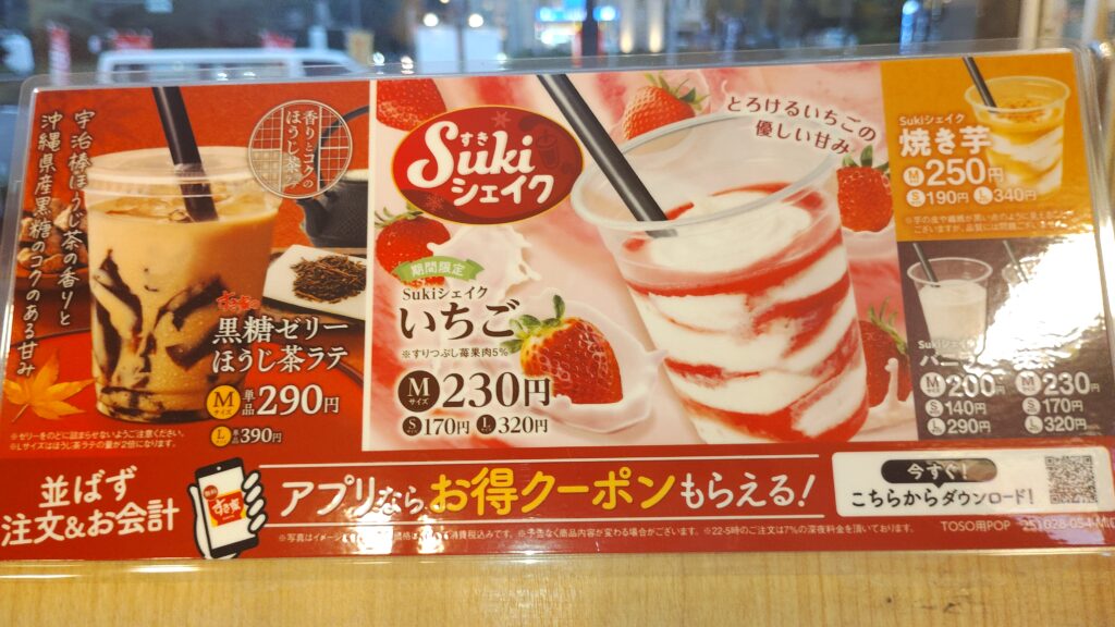 2025年10月28日、すき家から期間限定で発売された「Sukiシェイク いちご」。
