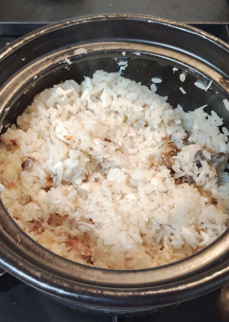 焼いた鯛の身をほぐし、ご飯と一緒に土鍋で炊き込みます。