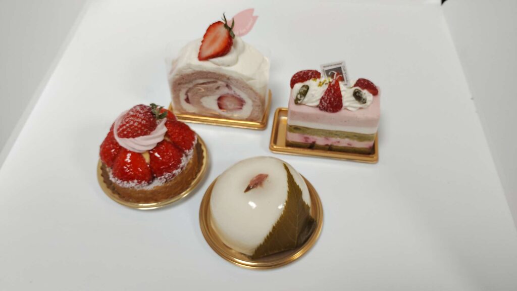 春にしか味わえない、苺や桜を使ったスイーツ。見た目も華やかで、つい手に取りたくなる季節限定のケーキたちです。
