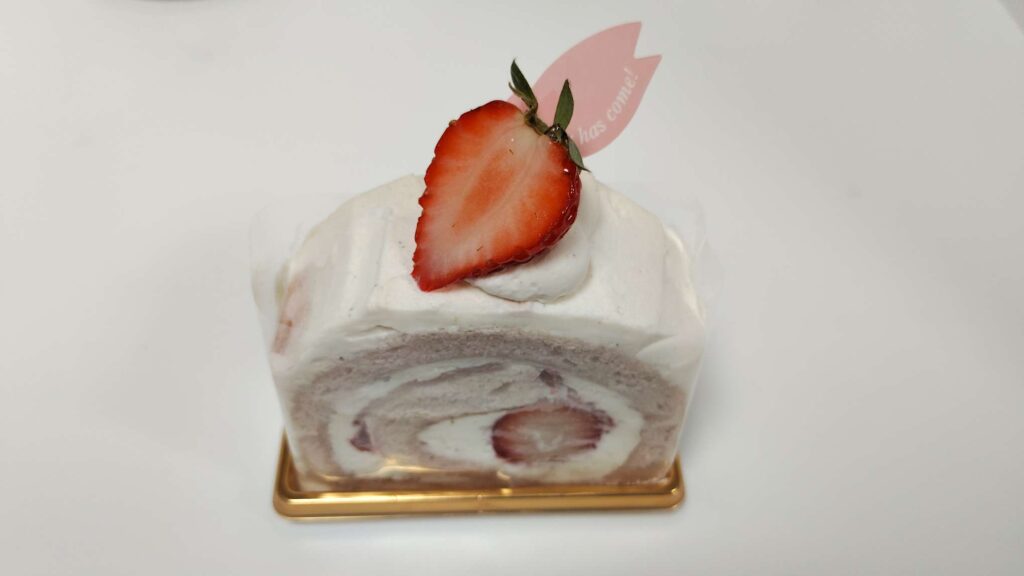 たっぷりのいちごと、ふんわり広がる桜の香りが楽しめる春限定ロールケーキ。