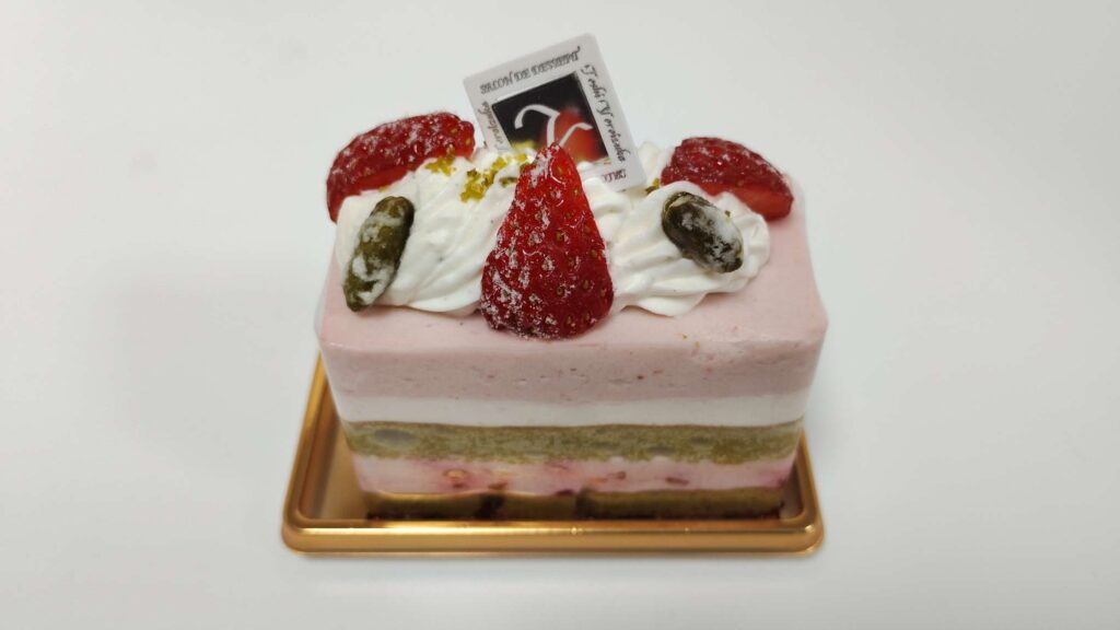 旬のいちごとピスタチオを組み合わせた贅沢なケーキです。
