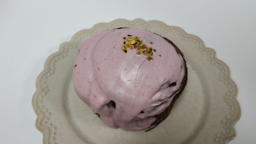 個人的には、ピスタチオ感がもっと強いほうがよいのでは?ピスタチオの香りや味がほんのりで甘さもすごく控えめなので、見た目ほどパンチがないと感じてしまいました…。