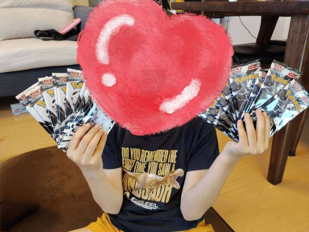 わが家では、毎回ポケカの新弾発売を楽しみにしています。家族みんなそろって開封です。